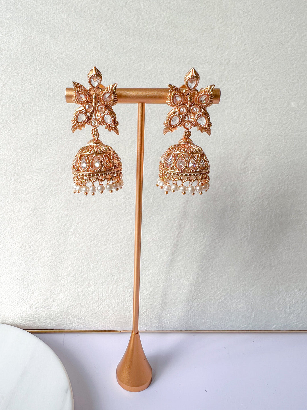 Breng een vleugje traditie én glamour in je sieradencollectie met onze betoverende jhumka oorbellen. Deze iconische, belvormige oorbellen zijn al eeuwenlang geliefd in de Indiase cultuur en vandaag de dag zijn ze niet meer weg te denken uit de moderne sieraden-wereld. In onze jhumka collectie vind je klassieke en moderne ontwerpen met prachtige details.