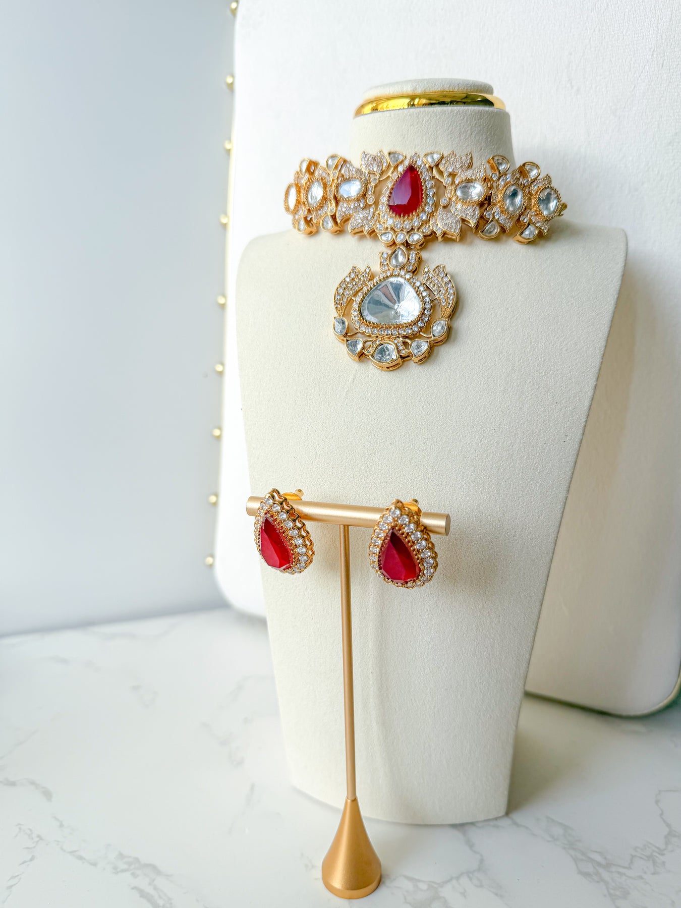 • Tweedelige sieradenset bestaande uit een choker en een paar oorbellen