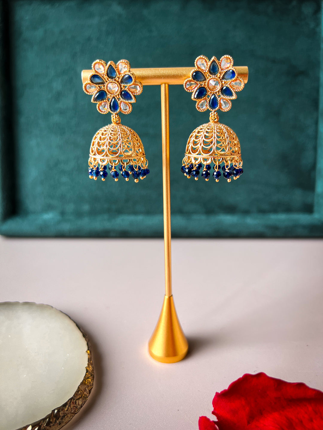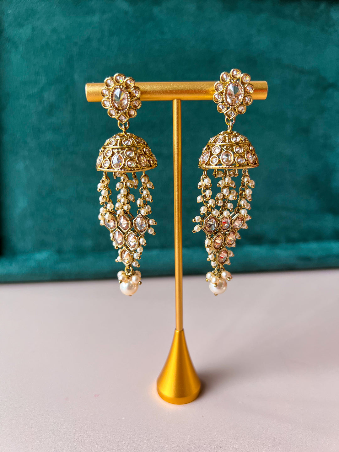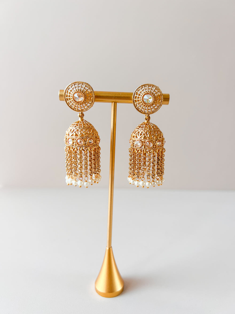 Breng een vleugje traditie én glamour in je sieradencollectie met onze betoverende jhumka oorbellen. Deze iconische, belvormige oorbellen zijn al eeuwenlang geliefd in de Indiase cultuur en vandaag de dag zijn ze niet meer weg te denken uit de moderne sieraden-wereld. In onze jhumka collectie vind je klassieke en moderne ontwerpen met prachtige details.
