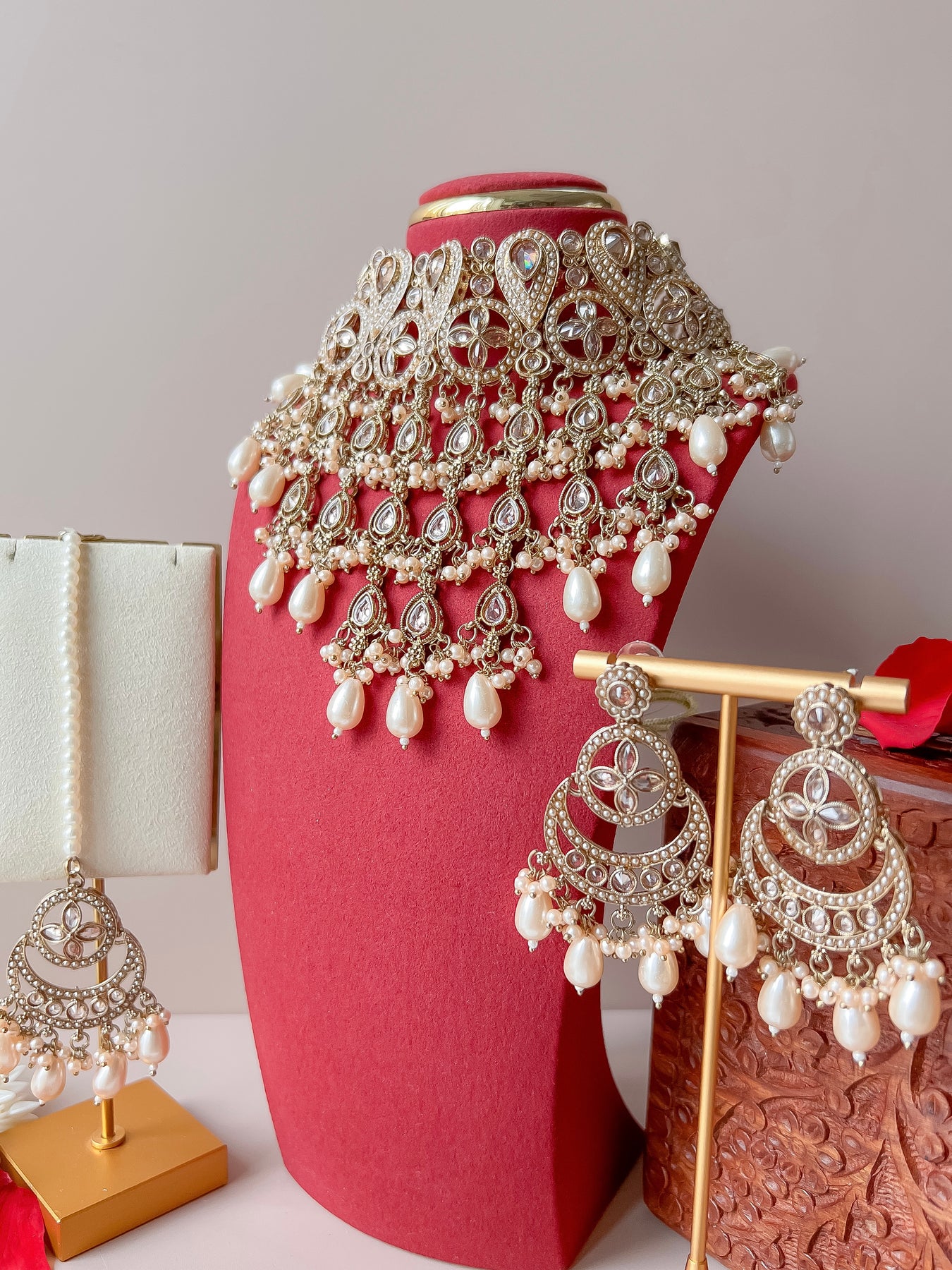 - Set bestaande uit een choker halsketting, een paar oorbellen en een hoofdsieraad